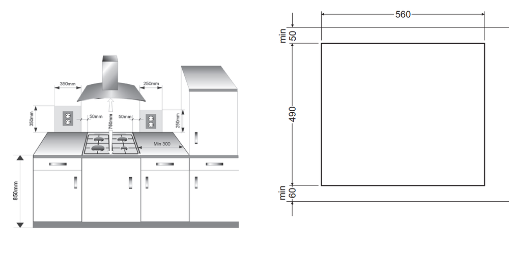 Высота варочной поверхности, мм