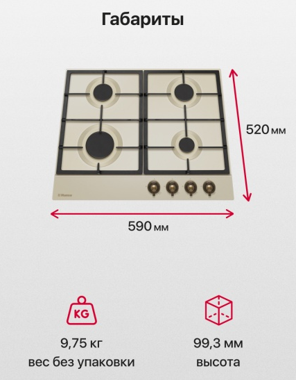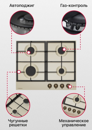i Приборы могут имеют разное количество газовых, электрических и индукционных конфорок. Выбирайте оптимальный вариант для комфортной готовки.
