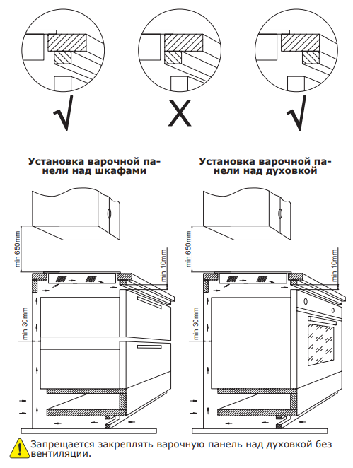 i Характер огранки фаски на внешней стороне варочной панели. Металлические рамки предотвращают забивание монтажных швов крошками и пылью.