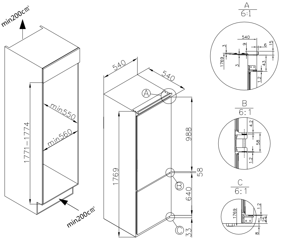 Расположение морозильной камеры