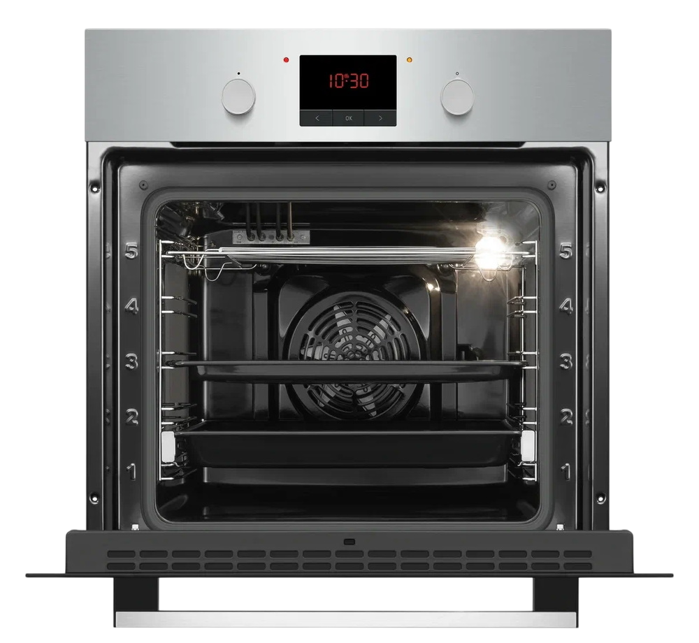 i Предполагает наличие встроенного вентилятора, который обеспечивает равномерное запекание благодаря непрерывной циркуляции горячего воздуха.