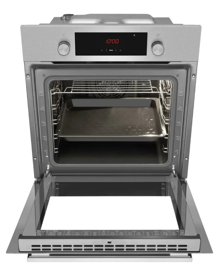 i С этой дополнительной функцией дверцу духового шкафа можно просто немного подтолкнуть и отпустить, она плавно закроется сама.