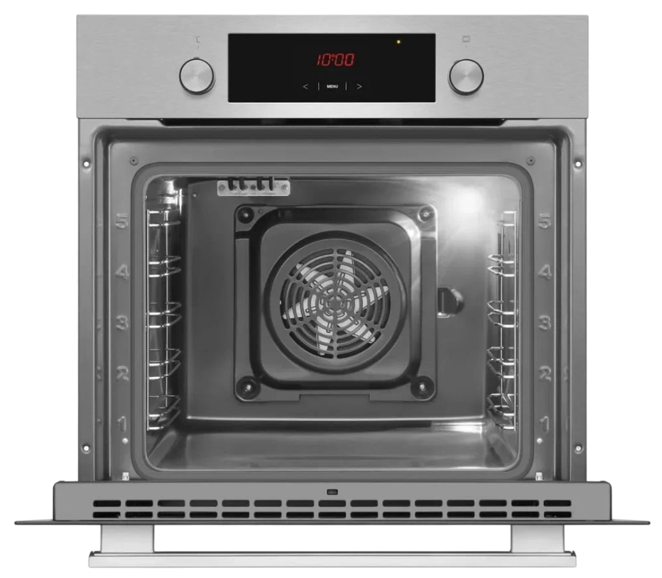 i Предполагает наличие встроенного вентилятора, который обеспечивает равномерное запекание благодаря непрерывной циркуляции горячего воздуха.