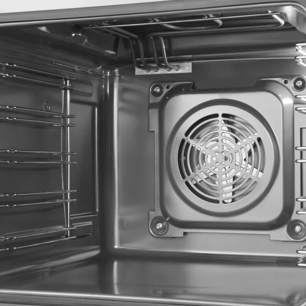 i Предполагает наличие встроенного вентилятора, который обеспечивает равномерное запекание благодаря непрерывной циркуляции горячего воздуха.