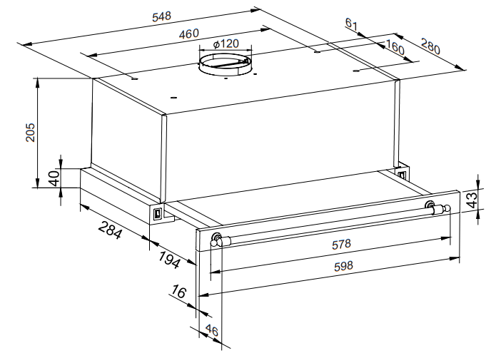 Hansa OTP6242RIH встраиваемая вытяжка телескопическая