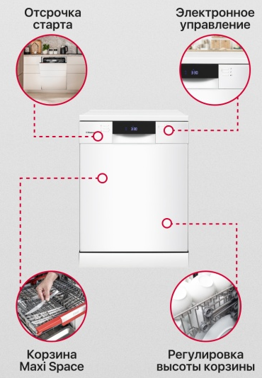 i В стандартной посудомоечной машине 3 корзины — 2 для посуды и 1 для столовых приборов. Современные модели могут иметь от 1 до 4 корзин.