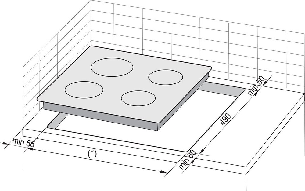 i Характер огранки фаски на внешней стороне варочной панели. Металлические рамки предотвращают забивание монтажных швов крошками и пылью.