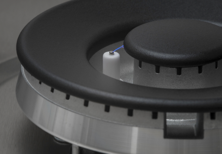 i Система безопасности в газовых плитах, варочных поверхностях и варочных центрах. Если пламя гаснет, подача газа прекращается автоматически.