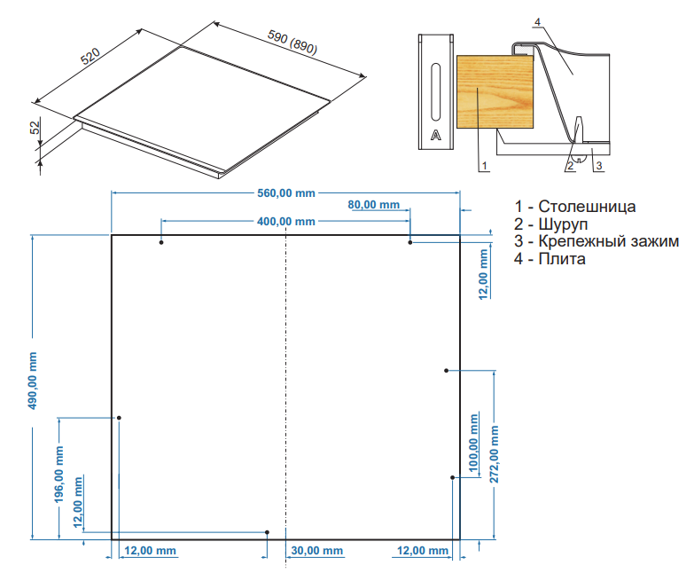 Высота варочной поверхности, мм