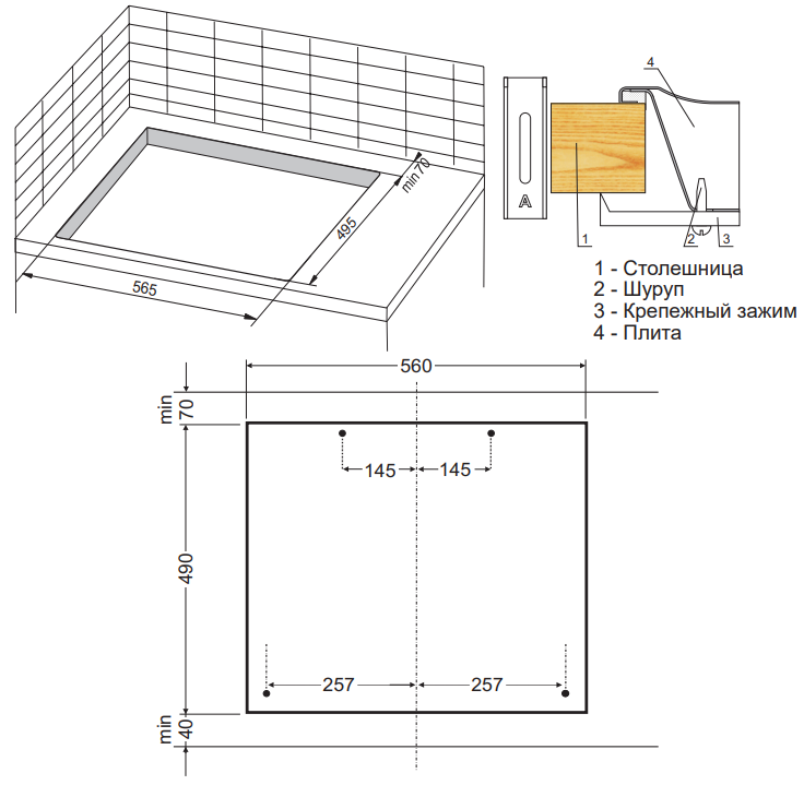 Высота варочной поверхности, мм
