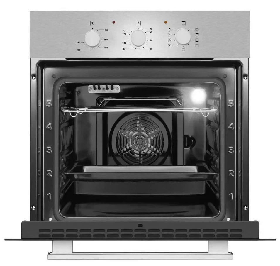 i У духового шкафа может быть газовый или электрический тип питания. Газовые духовки экономичнее, а электрические имеют больше режимов работы.