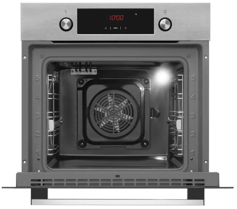 i Предполагает наличие встроенного вентилятора, который обеспечивает равномерное запекание благодаря непрерывной циркуляции горячего воздуха.