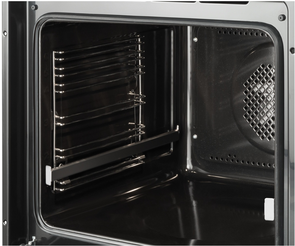 i Выдвижные металлические полозья, которые легко выезжают за пределы камеры духовки вместе с противнем, не давая ему упасть.
