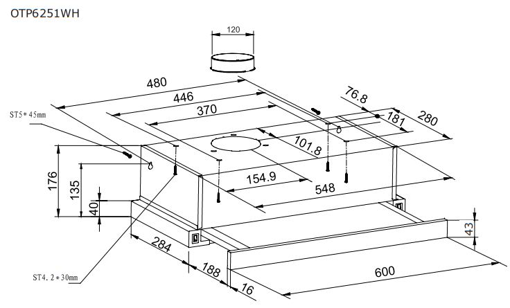 Hansa OTP6251WH встраиваемая вытяжка телескопическая