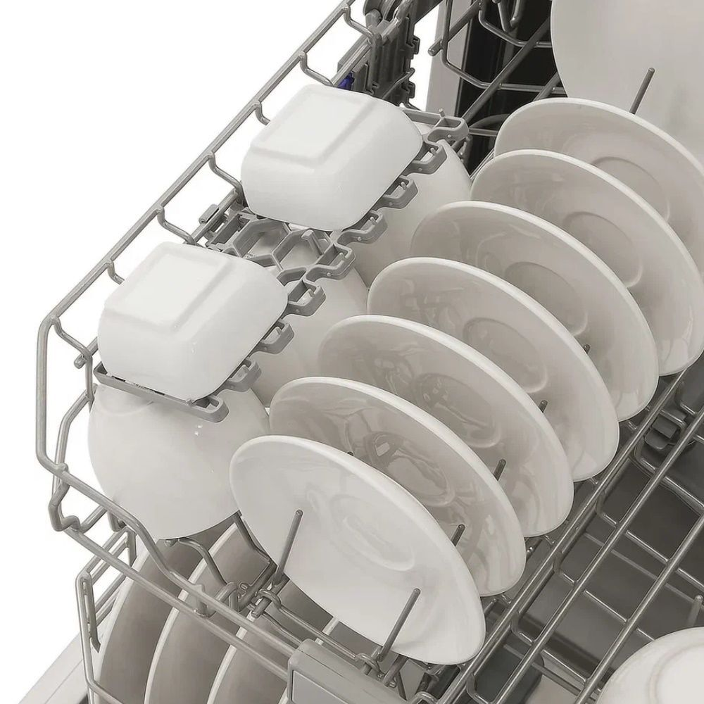 i В стандартной посудомоечной машине 3 корзины — 2 для посуды и 1 для столовых приборов. Современные модели могут иметь от 1 до 4 корзин.