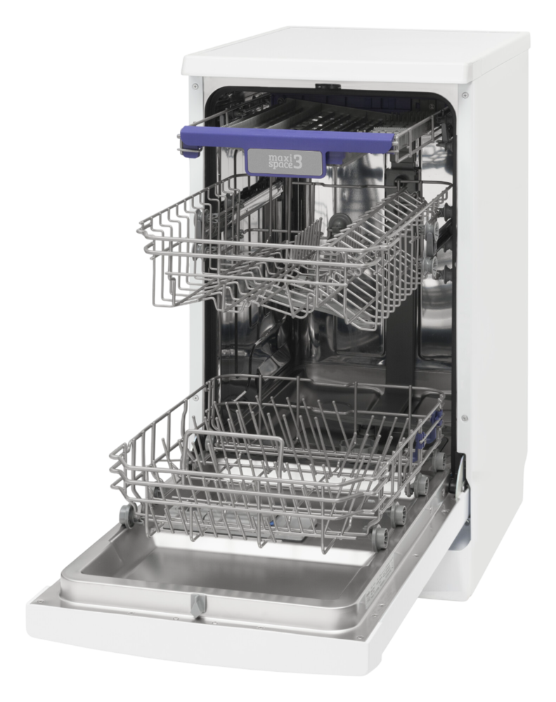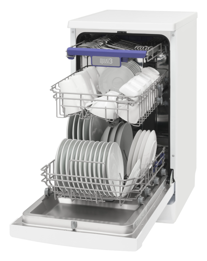 i В стандартной посудомоечной машине 3 корзины — 2 для посуды и 1 для столовых приборов. Современные модели могут иметь от 1 до 4 корзин.