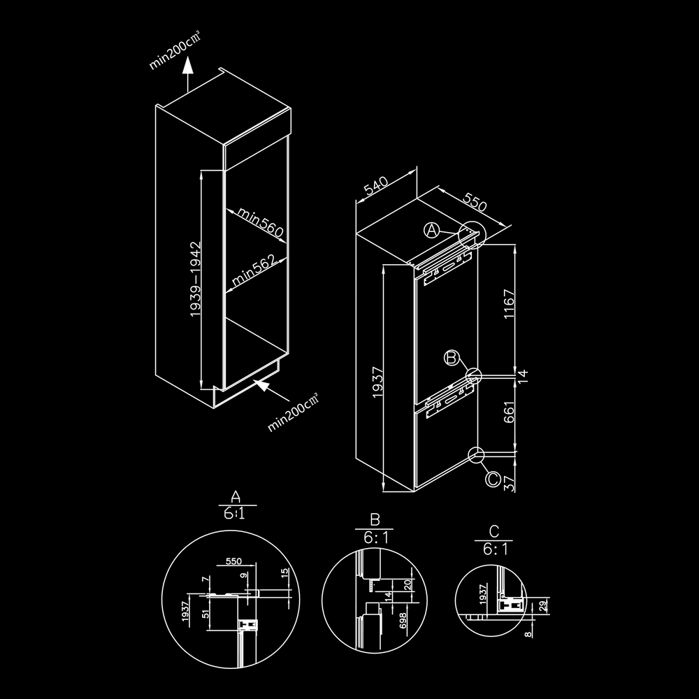HIBERG i-RFCB 455F NFW двухкамерный холодильник встраиваемый
