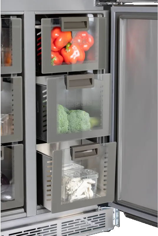 i В зоне свежести температура держится на уровне 0°С, так продукты дольше остаются свежими. Подходит для свежего мяса, рыбы, фруктов, овощей.