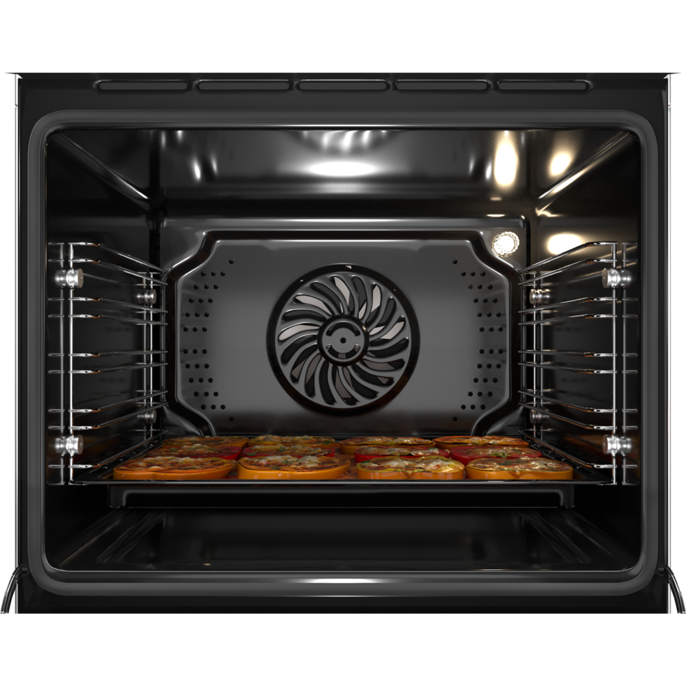 i Предполагает наличие встроенного вентилятора, который обеспечивает равномерное запекание благодаря непрерывной циркуляции горячего воздуха.