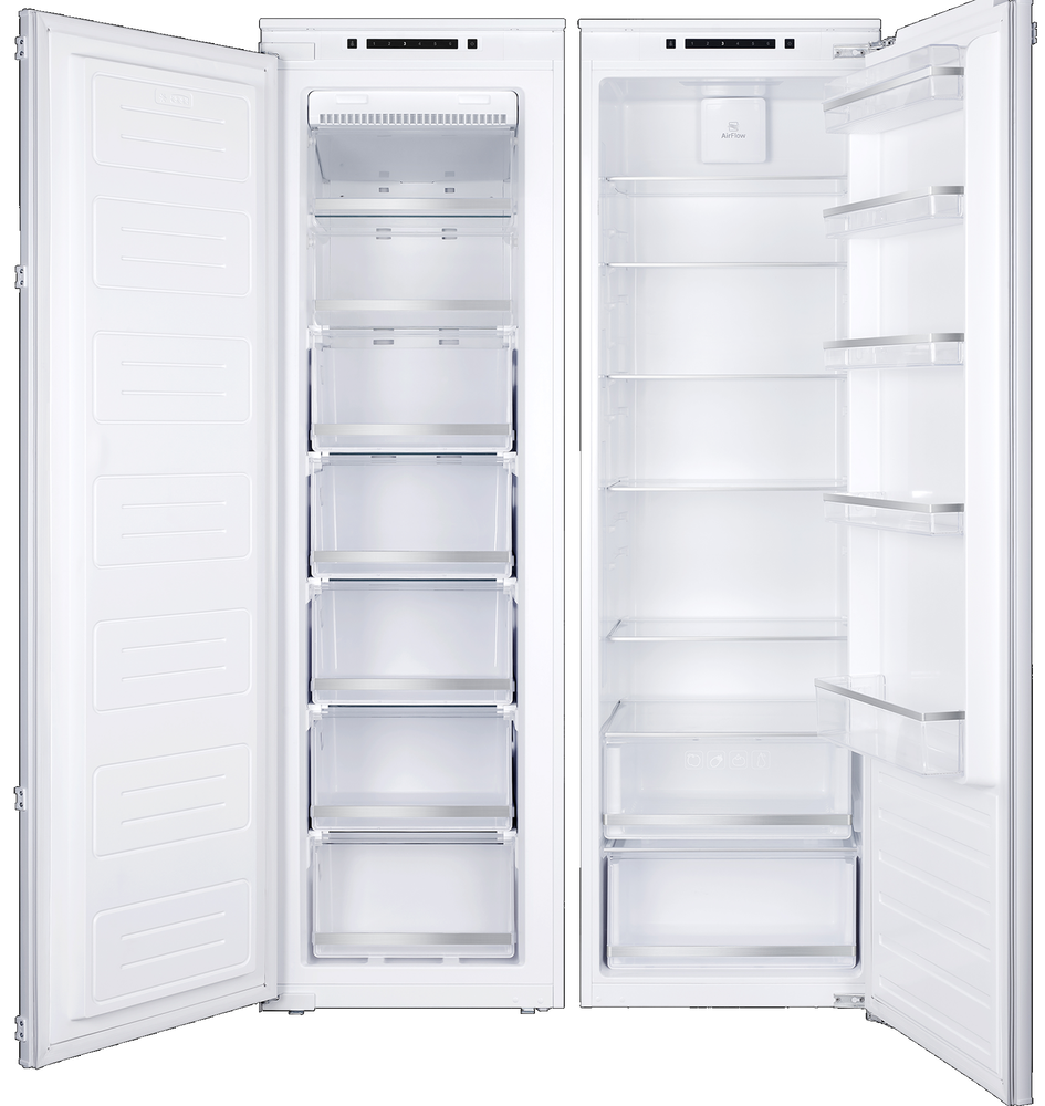i Морозильная камера может быть расположена сверху, снизу от основной камеры, Side-by-Side. Также она может отсутствовать вовсе.