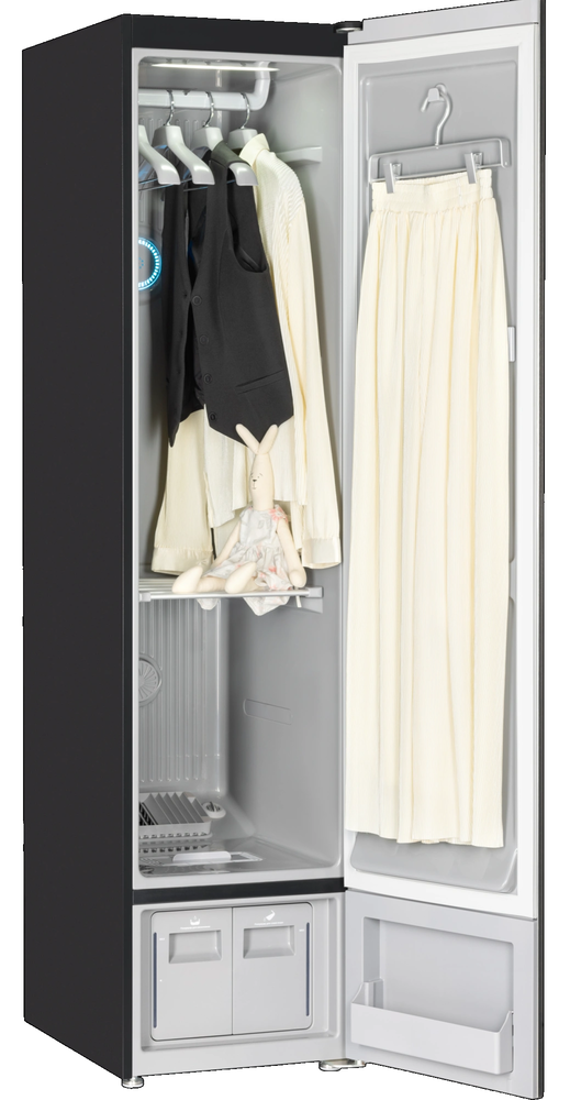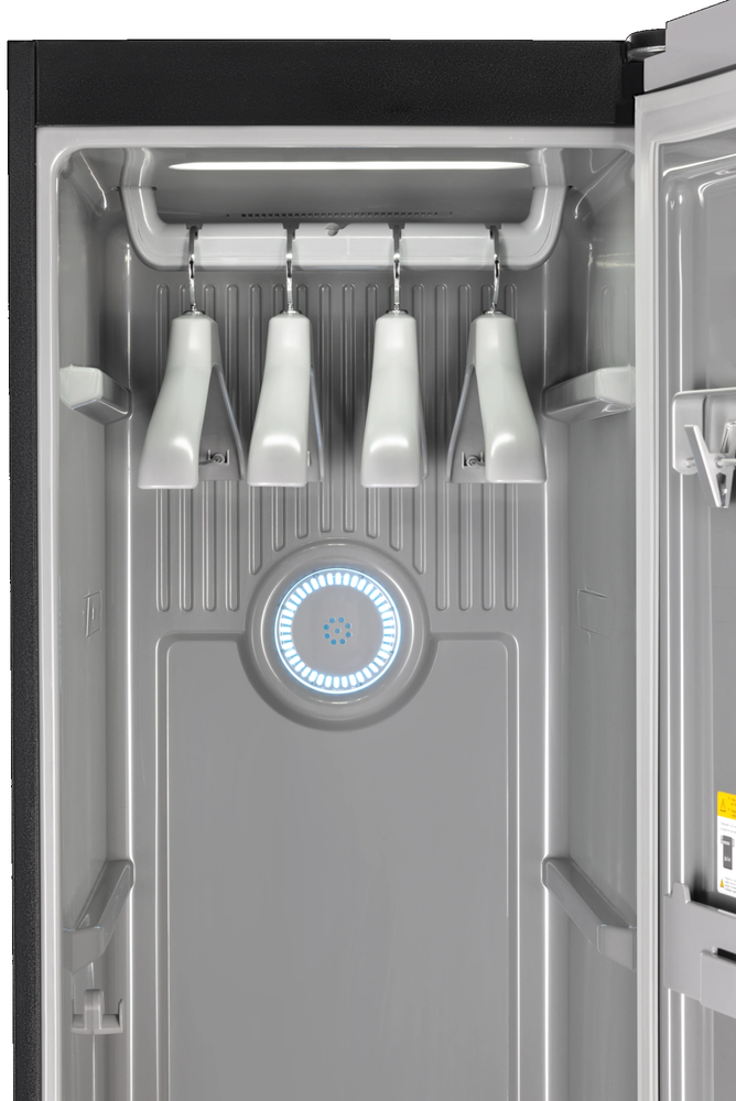 Инструкция по эксплуатации с гарантийным талоном, Вешалка 4 шт., Вешалка для фиксации брюк, полка, резервуар для наполнения, резервуар для слива воды, ароматизатор с арома-блоком, шнур питания |