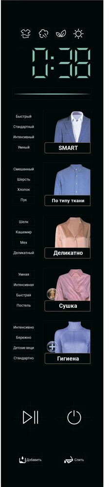 i Небольшой экран на передней панели прибора. Помогает выбирать программу, менять настройки. На дисплее выводятся сообщения об ошибке.