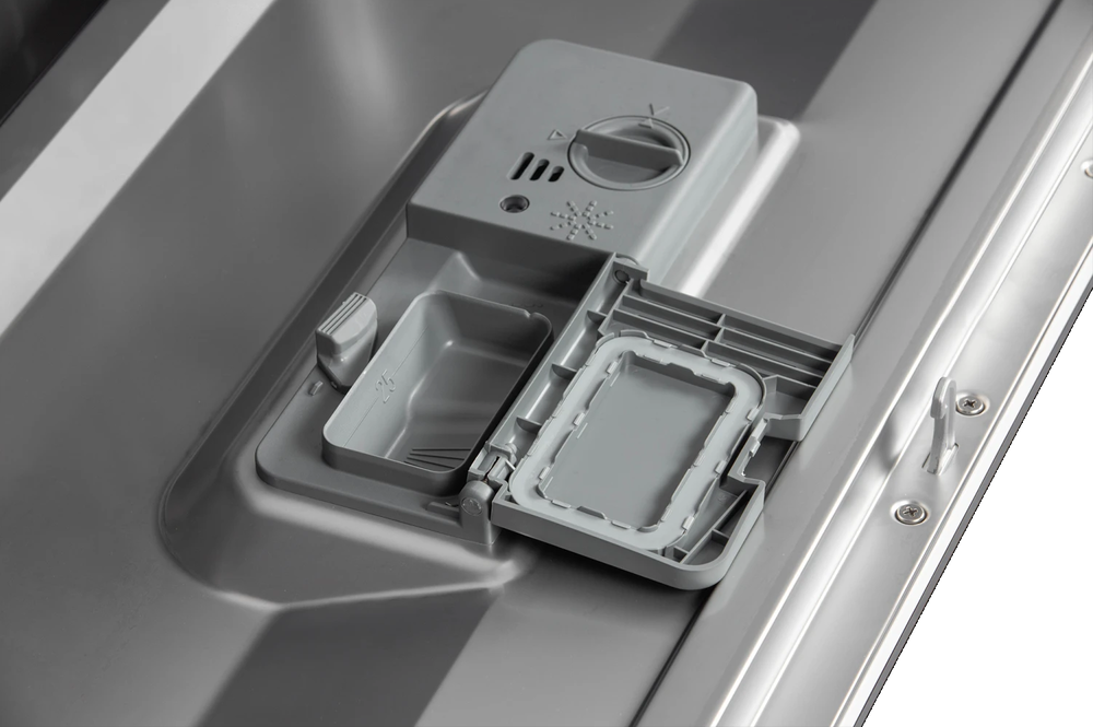 i Возможно использование специальных таблеток 3в1, включающих моющее средство, ополаскиватель и соль для смягчения воды. Это быстро и удобно.