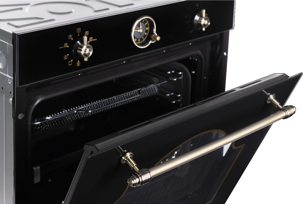 i Предполагает наличие встроенного вентилятора, который обеспечивает равномерное запекание благодаря непрерывной циркуляции горячего воздуха.