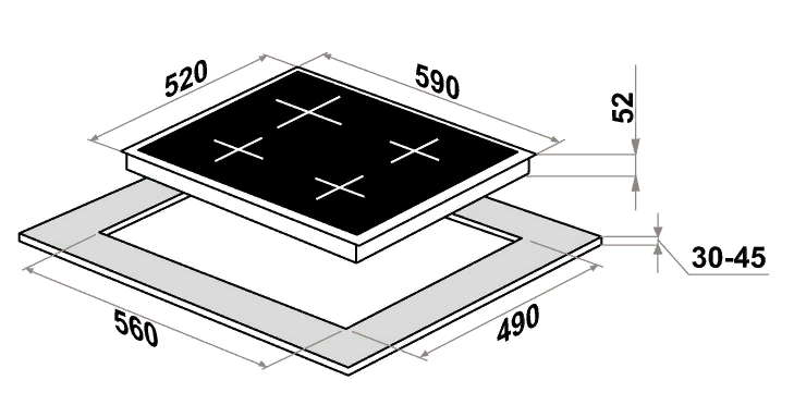 Ширина варочной поверхности, см