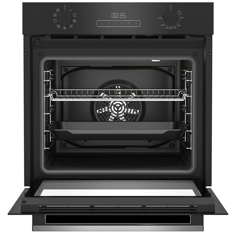 i Предполагает наличие встроенного вентилятора, который обеспечивает равномерное запекание благодаря непрерывной циркуляции горячего воздуха.