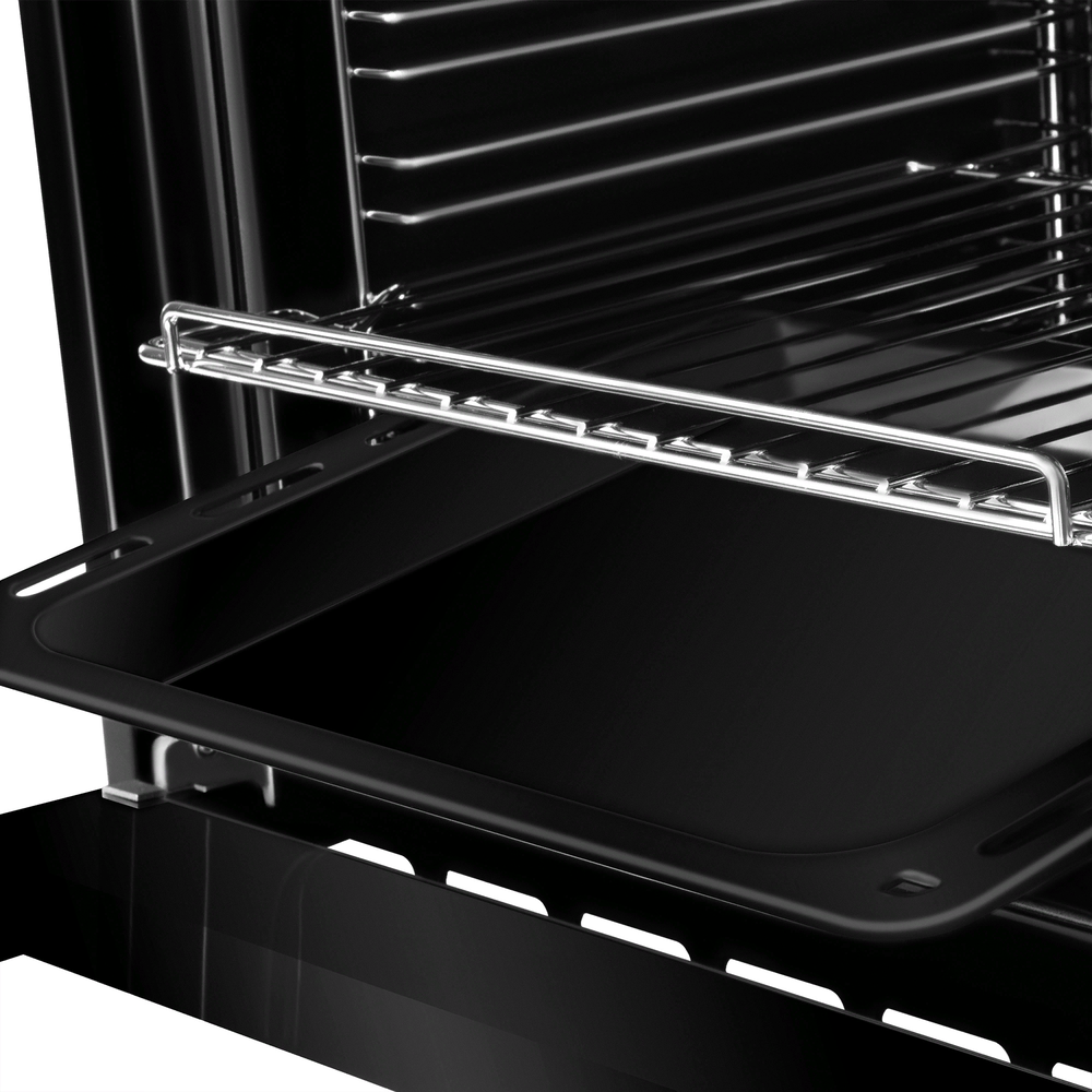 i Выдвижные металлические полозья, которые легко выезжают за пределы камеры духовки вместе с противнем, не давая ему упасть.