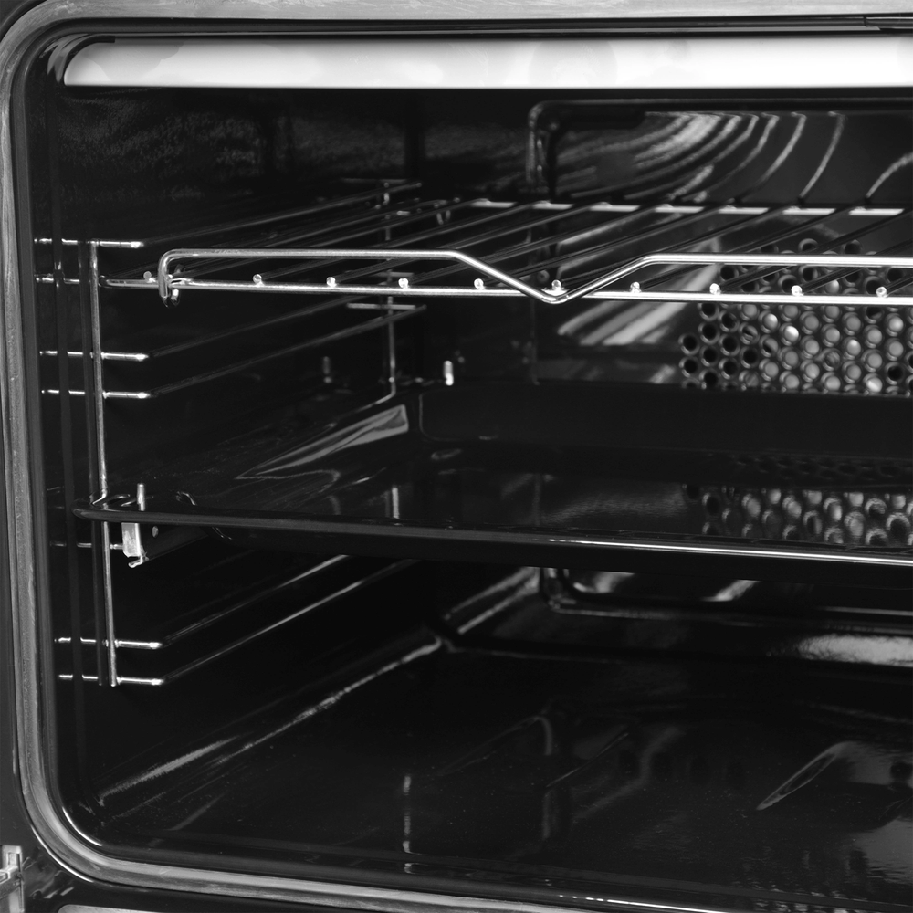 i Выдвижные металлические полозья, которые легко выезжают за пределы камеры духовки вместе с противнем, не давая ему упасть.