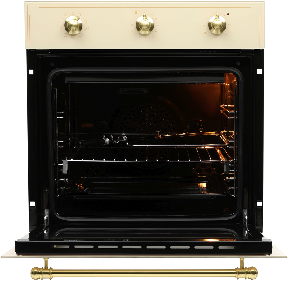 i Предполагает наличие встроенного вентилятора, который обеспечивает равномерное запекание благодаря непрерывной циркуляции горячего воздуха.