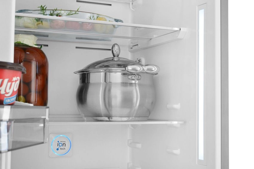 i В зоне свежести температура держится на уровне 0°С, так продукты дольше остаются свежими. Подходит для свежего мяса, рыбы, фруктов, овощей.