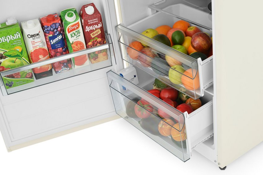 i В зоне свежести температура держится на уровне 0°С, так продукты дольше остаются свежими. Подходит для свежего мяса, рыбы, фруктов, овощей.