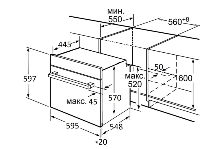 i Ширина корпуса электроприбора. Особенно важно точно знать точную допустимую ширину для встраиваемой техники.