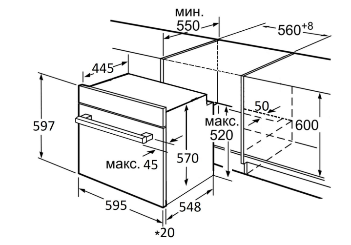 i Ширина корпуса электроприбора. Особенно важно точно знать точную допустимую ширину для встраиваемой техники.