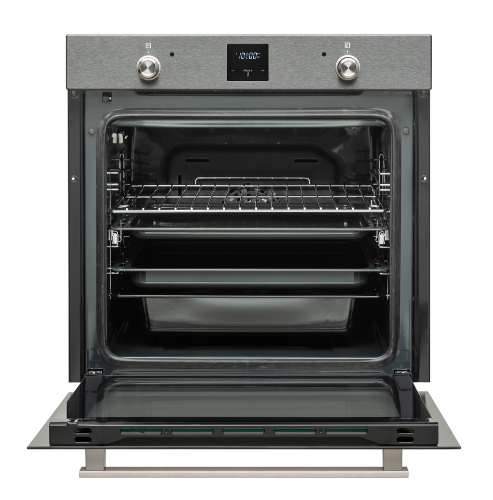 i У духового шкафа может быть газовый или электрический тип питания. Газовые духовки экономичнее, а электрические имеют больше режимов работы.