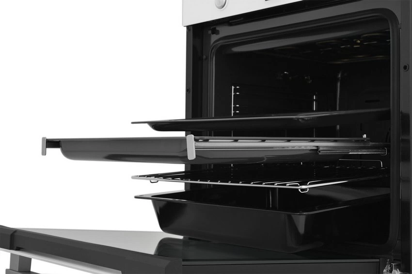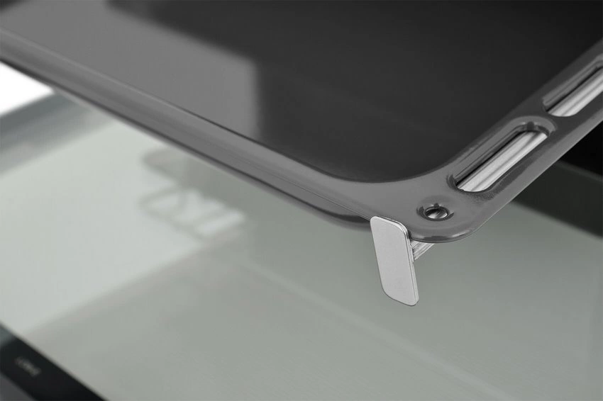 i Выдвижные металлические полозья, которые легко выезжают за пределы камеры духовки вместе с противнем, не давая ему упасть.