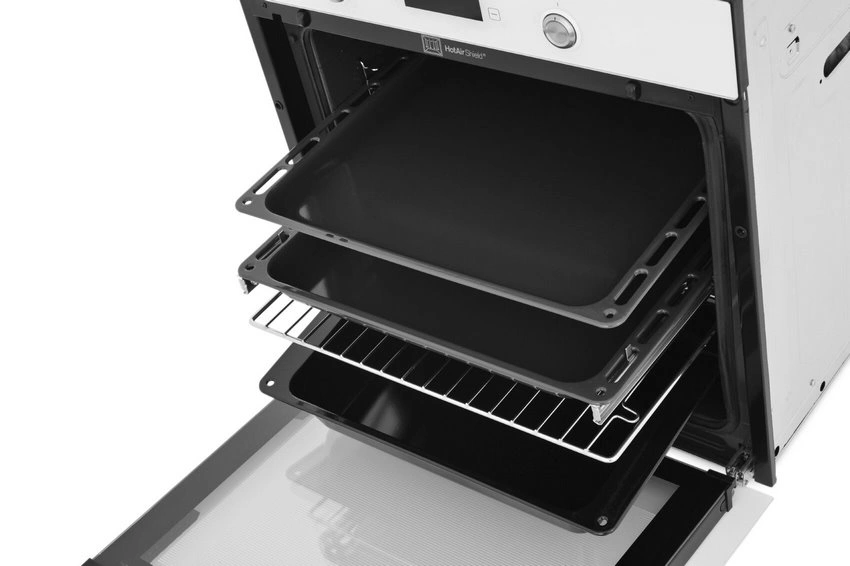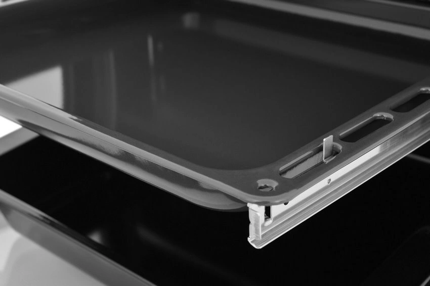 i Выдвижные металлические полозья, которые легко выезжают за пределы камеры духовки вместе с противнем, не давая ему упасть.