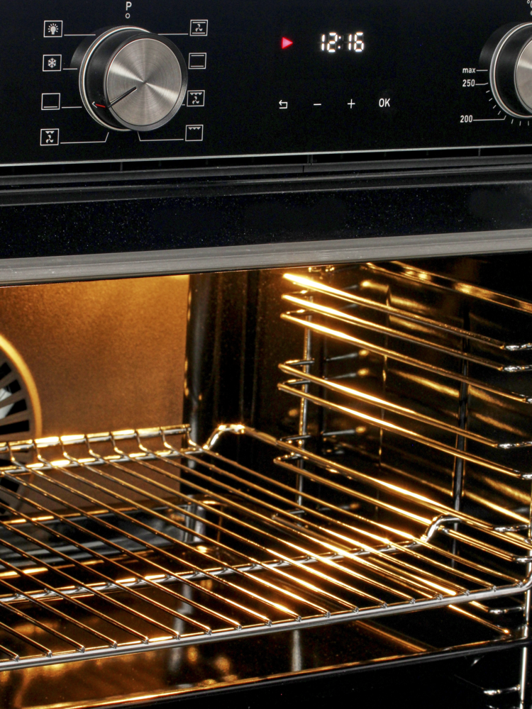 i У духового шкафа может быть газовый или электрический тип питания. Газовые духовки экономичнее, а электрические имеют больше режимов работы.