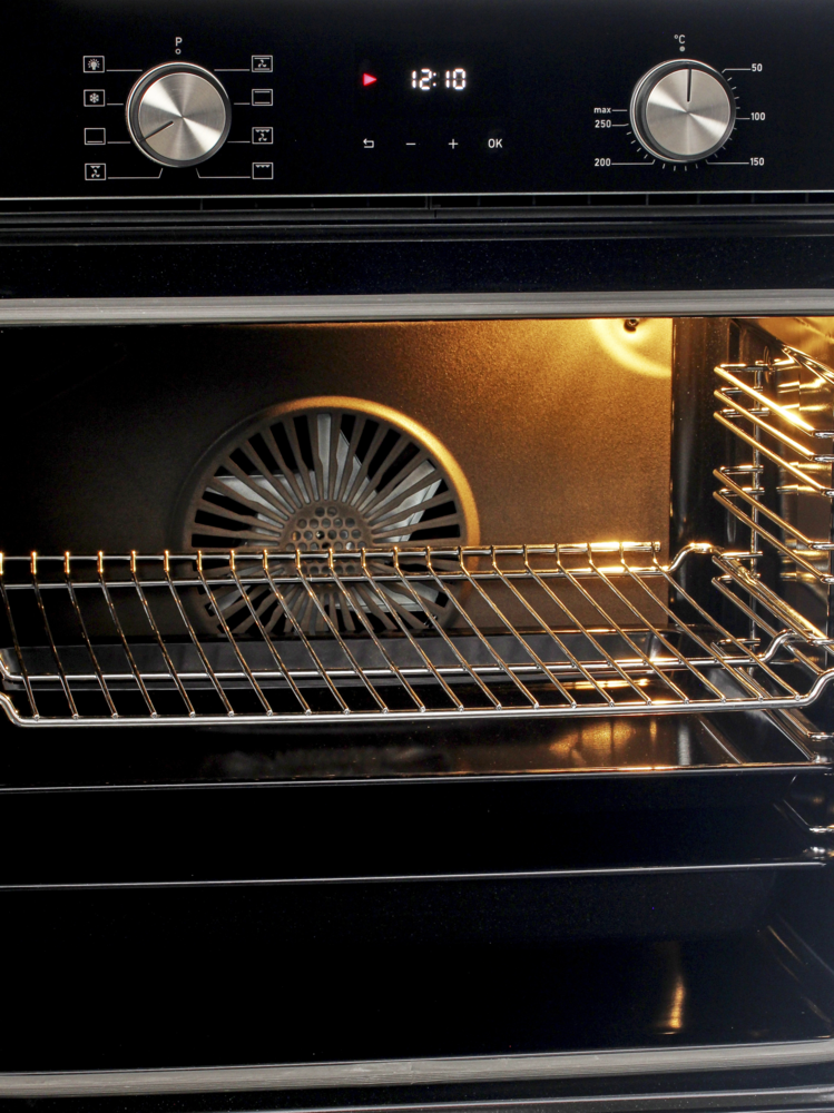 i Предполагает наличие встроенного вентилятора, который обеспечивает равномерное запекание благодаря непрерывной циркуляции горячего воздуха.