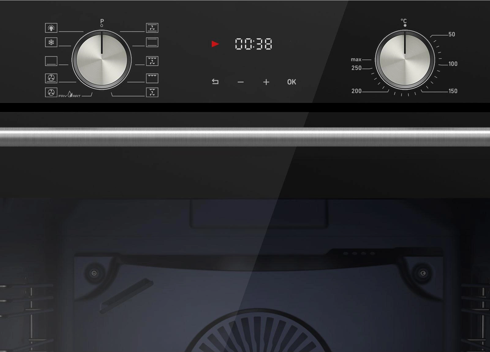 i Предполагает наличие встроенного вентилятора, который обеспечивает равномерное запекание благодаря непрерывной циркуляции горячего воздуха.