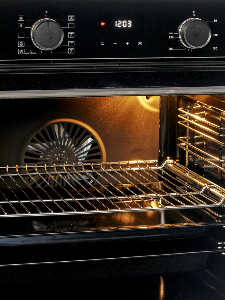 i Предполагает наличие встроенного вентилятора, который обеспечивает равномерное запекание благодаря непрерывной циркуляции горячего воздуха.