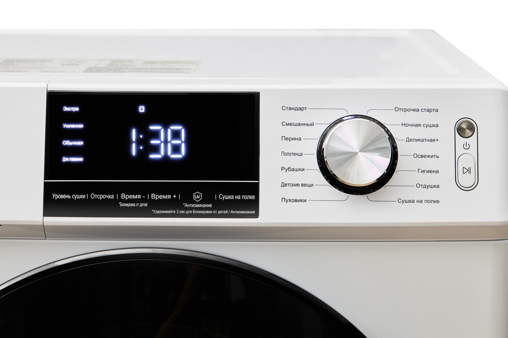 i Белье обрабатывается потоком теплого воздуха в течение определенного времени. Продолжительность сушки зависит от выбранной программы.