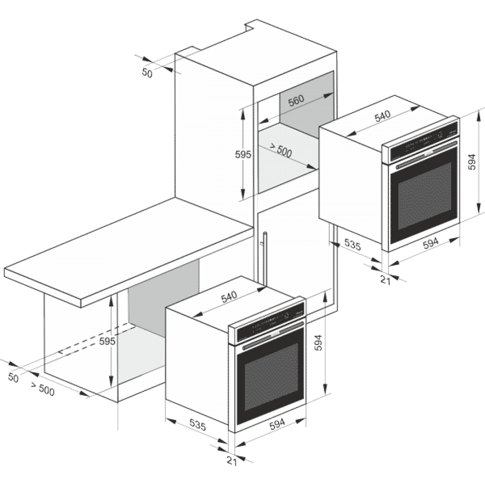 Минимальные размеры для встраивания (ШxГxВ), мм