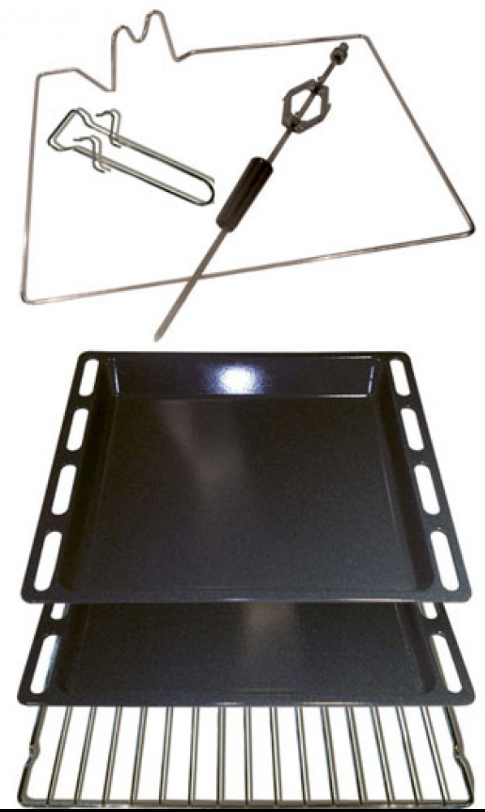 решетка,глубокий противень,мелкий противень,вертел,рамка под вертел, ухват для противней |