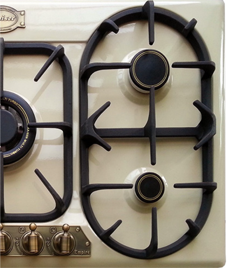 i Приборы могут имеют разное количество газовых, электрических и индукционных конфорок. Выбирайте оптимальный вариант для комфортной готовки.