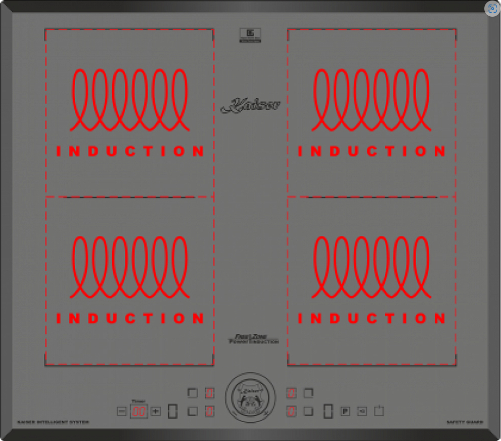 i На варочной поверхности может быть от 2 до 8 электрических конфорок с индукционным нагревом. Для них нужна специальная посуда.