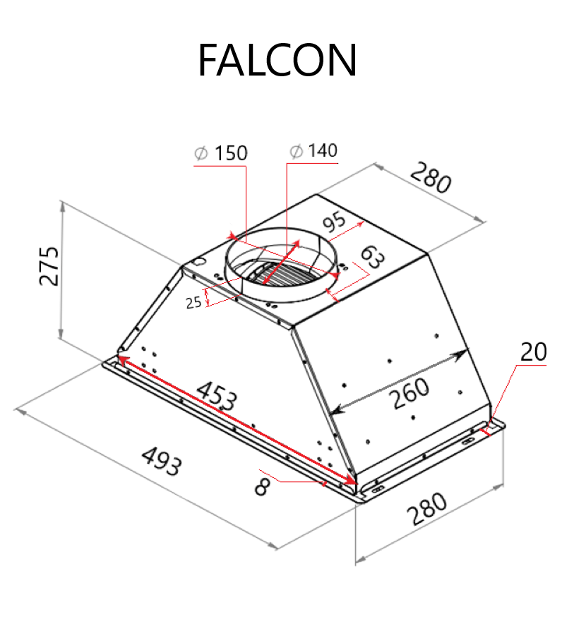 Konigin Falcon Black Glass 50 встраиваемая вытяжка для шкафа